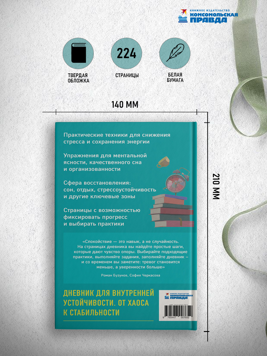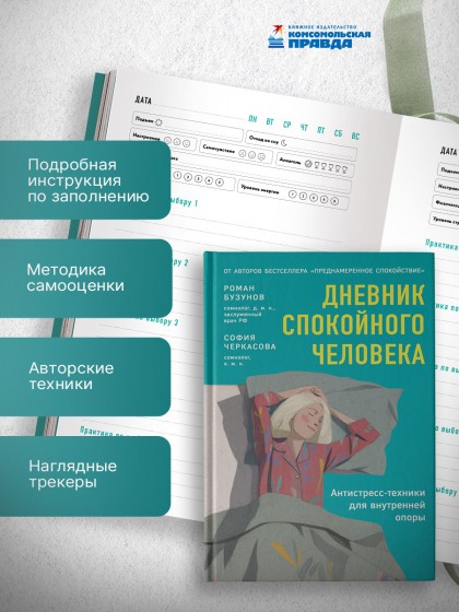 Планер с антистресс-техниками для внутренней опоры от практикующих сомнологов Романа Бузунова и Софии Черкасовой, авторов бестселлера «Преднамеренное спокойствие». Его страницы станут поддержкой людей, живущих в режиме постоянной загрузки. Внутри вы найдёте подробную инструкцию по заполнению, методику, помогающую определить дефициты устойчивости, авторские техники и трекеры для регулярной оценки психоэмоционального состояния. Восстанавливайтесь по восьми ключевым направлениям – от сна и отдыха до отношений и мотивации. Внедряйте полезные практики, не требующие много времени, и добивайтесь стойких позитивных изменений.