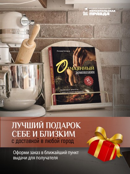 Мужчина на кухне — звучит как мечта! Книга «Отчаянный домохозяин» с оригинальными рецептами для душевных семейных застолий — воплощение этой мечты. Автор, опытный журналист и гастрономический обозреватель Леонид Захаров, ведет постоянную одноименную рубрику. В ней он делится совсем не суровым, а добрым и ироничным мужским взглядом на кухонные задачи, рассказывает вкусные истории и готовит аппетитные блюда. Теперь его фирменные рецепты собраны под одной обложкой: гребешки из грибов, бекон из рисовой бумаги, пицца из баклажана, бургеры из шампиньонов и множество других идей, которые точно захочется повторить дома. Книга написана с той же остротой, как нож, которым орудует автор на своей кухне. Это не просто сборник рецептов, а источник хорошего настроения и повод собраться вместе.