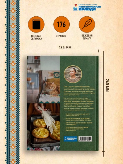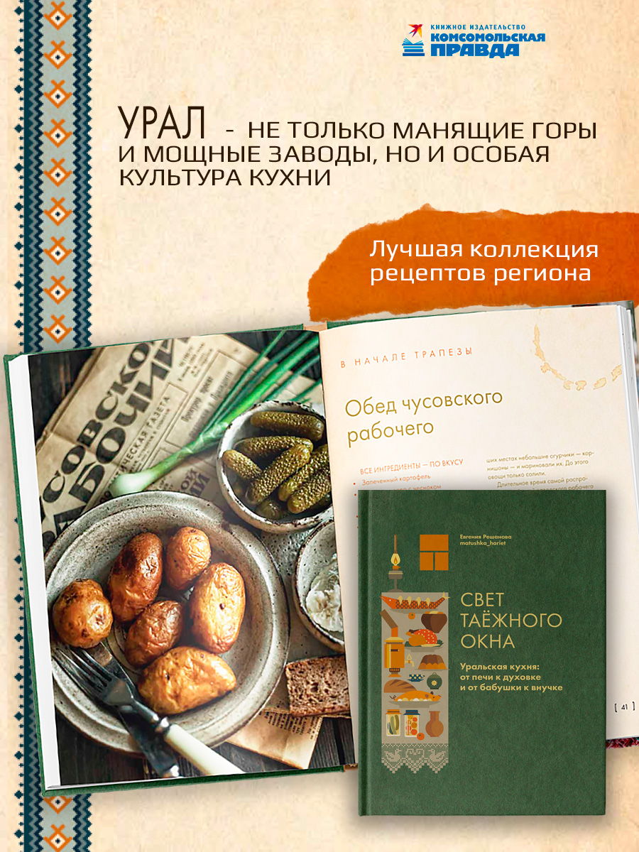 Урал – не только манящие горы и мощные заводы, но и особая культура кухни, с крепким характером и таёжным вкусом. Кулинар Евгения Решанова, автор бестселлера «Щепотка вкусных воспоминаний», бережно собрала коллекцию ярких и значимых рецептов региона, которые можно приготовить дома в любой точке страны. Мы заглянем в рабочую столовую, раскроем секрет любимой окрошки инженеров и узнаем за что они так ее ценят. Отправимся в укромные уральские деревни, где готовят скоблянку из утки, озерник, грибовницу и крученое сало. Научимся делать исетские котлеты и румяные шаньги, разберемся в тонкостях простых, но выразительных блюд. А к душистому травяному чаю подадим золотистую ураму, паренчу и тот самый свердловский кекс. От печи до духовки, от старых бабушкиных тетрадей до современной кухни внучки – с заботой и теплом из сердца России.