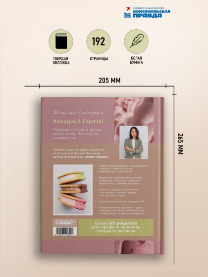 Холодные десерты на пике тренда и актуальны в любой сезон. Восхитительный и оригинальный универсальный формат — для праздника, фуршета или тихого домашнего вечера. В новой книге кондитера Ксении Хохловой, автора бестселлера «Будет сладко», — более 65 рецептов мороженого, сорбетов, тортов-мороженого, тарталеток и конфет — для искушенных мастеров и начинающих.