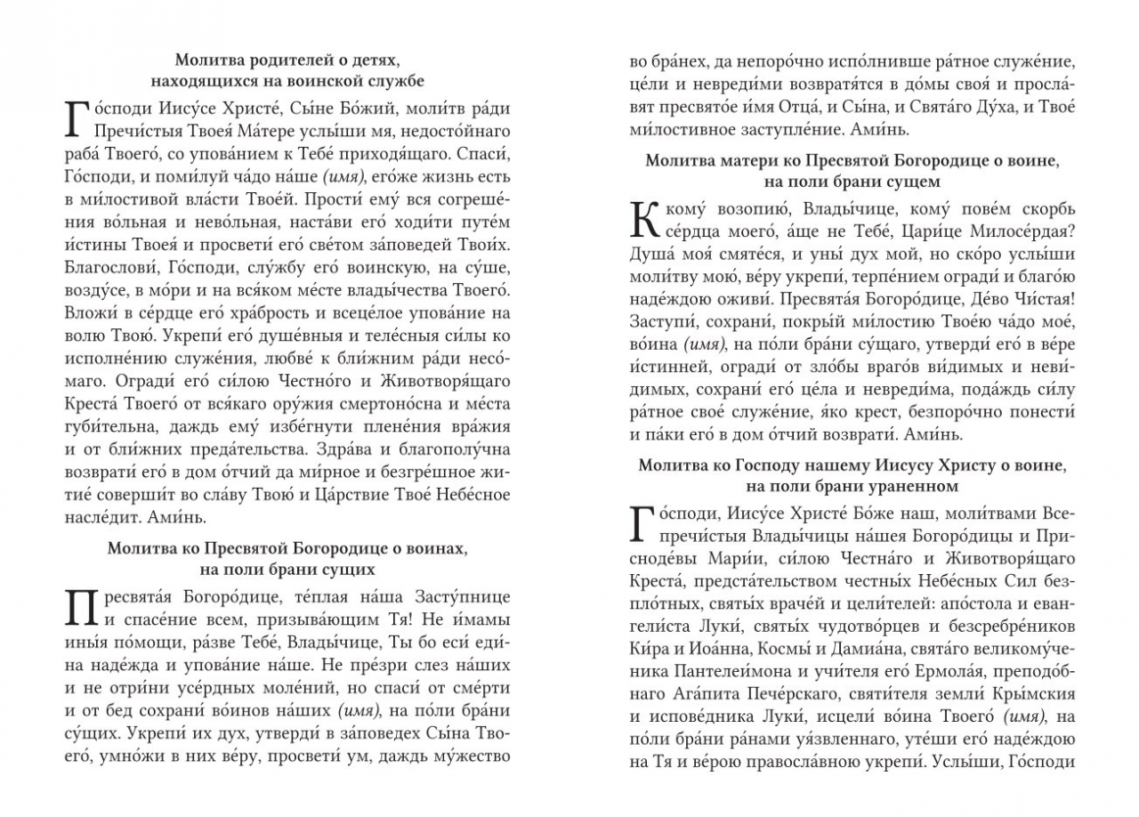 - Структура для молитвенной жизни. Содержит подборку ключевых молитв на разные случаи: о семье, браке, детях, их обучении, здоровье, воинах — всё в одном месте.