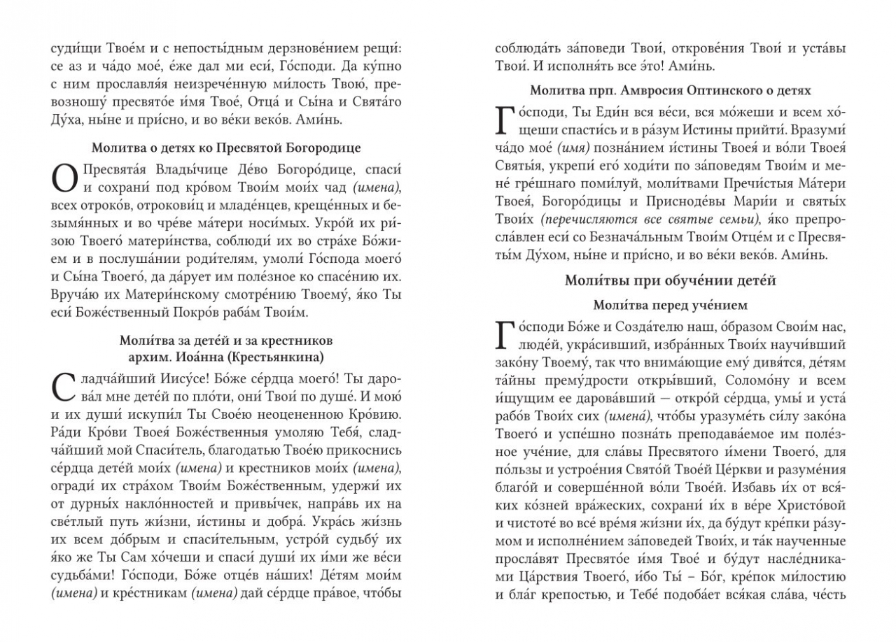 - Структура для молитвенной жизни. Содержит подборку ключевых молитв на разные случаи: о семье, браке, детях, их обучении, здоровье, воинах — всё в одном месте.